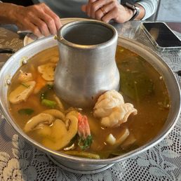 I've been by here 100's of times and I'm glad I stopped in. As you can see it's a casual, easy dining restaurant (see my interior pics). The service was fairly good. The parking was easy and ample. We were there for a weekend lunch. We started with #1 - Egg Rolls (see my pic). The wrappings were quite light and crunchy. The interior veggies and bean threads were okay, not very crunchy. The side of sweet & sour sauce was slightly sweet and minimal sour. Being a cold, dreary day we ordered, basically, soups. We started with the #51 - Tom-Kah Gal (see my pic). The coconut milk created a warming, creamy base. There was a nice tang of ginger and lime leaves really came through in the broth. You can see in my pic the thinly sliced chicken breast meat. The meat was mildly flavored and very tender. We also had the #75 - Beef Bowl Soup. This is a simple soup of beef broth and noodles. As you can see in my pic there was ample noodles and plenty of beef slices. The broth had a fair amount of rich flavor tempered with salty celery slices and a few chopped green onions.